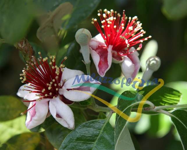 La Feijoa (o Acca sellowiana) è una specie arbustiva e cespugliosa, ma facilmente convertibile in albero da frutto, a crescita lenta. Appartiene alla famiglia delle Myrtacee ed è originaria dell’America meridionale, sebbene la sua diffusione si sia ormai estesa all’Africa, all’Australia ed alle zone meridionali dell’Italia. Raggiunge un’altezza variabile da 1 a 7 metri e nella zona d’origine può raggiungere anche gli 8 metri. La pianta fiorisce tra Maggio e Giugno e fruttifica dai primi di Ottobre fino ai primi di Dicembre.