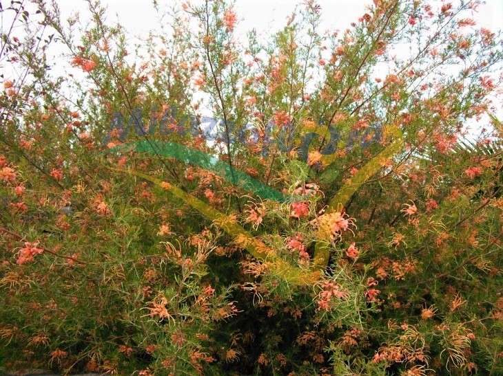 Grevillea x semperflorens è un ibrido fra G. thelemanniana e una forma a fiore giallo di G. juniperina .