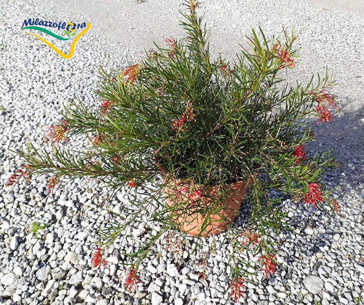 Grevillea x semperflorens è un arbusto eretto che, nel nostro giardino, raggiunge un'altezza di due metri. Le foglie strette possono essere lineari o divise in segmenti incoronati da una punta acuminata. I fiori rosso-arancio sono racchiusi in racemi penduli.