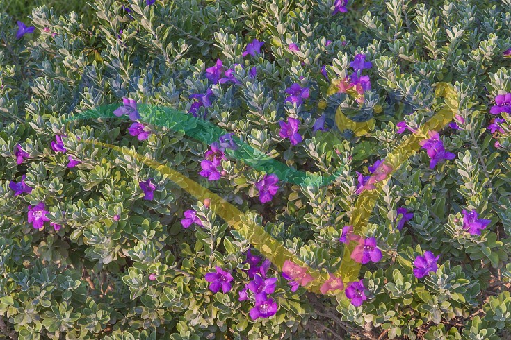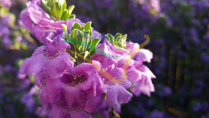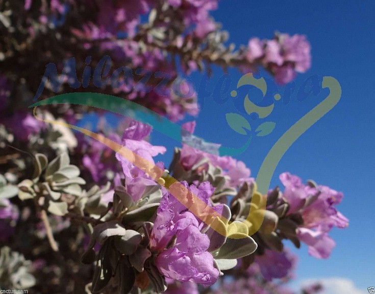Il Leucophyllum frutescens è un arbusto sempreverde della famiglia Scrophulariaceae, originaria del Texas e del Nord del Messico. Fiori campanulacei con cinque lobi di colore lilla. Fiorisce da marzo all’autunno. Notevolmente ramificato a partire dalla base, presenta fusti eretti che nella loro parte terminale recano numerose piccole foglie ellittiche grigio-verdi, responsabili dal complessivo aspetto affascinante ed argentato di questa pianta. Dalla primavera all'autunno, in maniera intermittente ed in genere associate a bruschi cambiamenti climatici (motivo per cui questa pianta è detta anche pianta ""barometro""), si verificano sorprendenti e massicce fioriture rappresentate da fiori (posti all'ascella delle foglie).