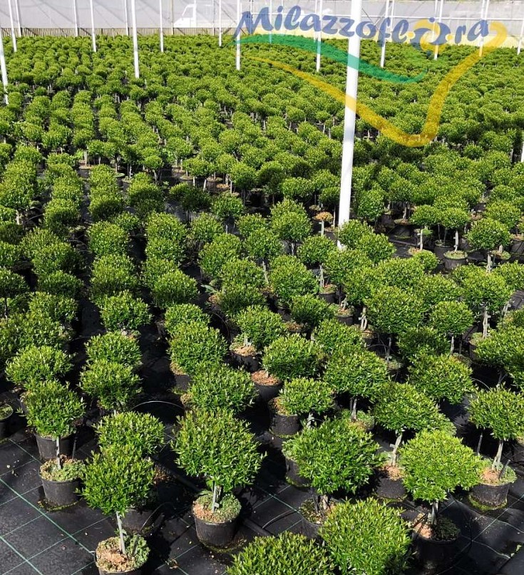 Il Mirto communis “Microphylla” è un arbusto sempreverde appartenente alla famiglia delle Myrtaceae. Ha un portamento compatto e può raggiunge il 1,5 metro d’altezza. Il fusto è di color rossiccio ma con il passare del tempo diventa grigiastro. Le foglie sono piccole, strette, lucide, hanno il margine intero, sono di un verde scuro e se schiacciate emanano una gradevole fragranza. I fiori sono bianco crema, solitari, semplici e sbocciano da Giugno a Settembre. I frutti sono piccole bacche di colore nero-violaceo, di consistenza carnosa.