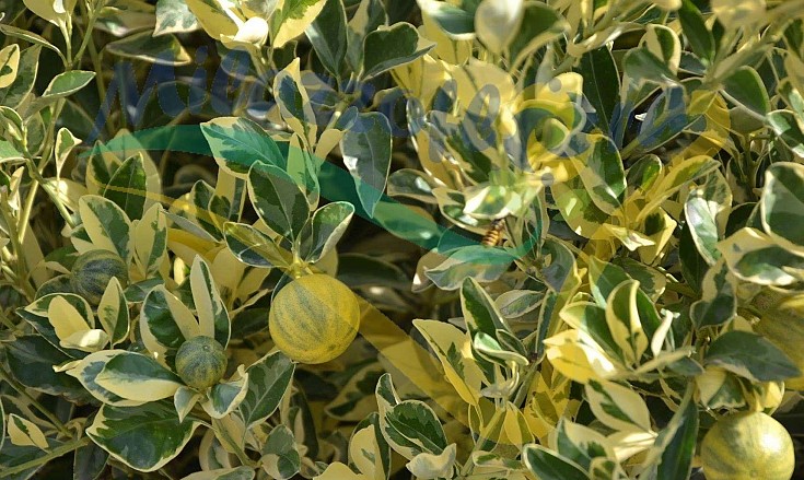 Un árbol bastante vigoroso y altamente productivo con un hábito compacto redondeado y hojas pequeñas y ovaladas. Las pequeñas flores blancas tienen una fragancia embriagadora y delicada. El fruto es pequeño y esférico como el calamondin común, pero difiere en sus inusuales hojas y frutos variegada, que presentan franjas de color verde claro. Esta es una planta muy decorativa, con flores y frutas que florece casi todo el año.