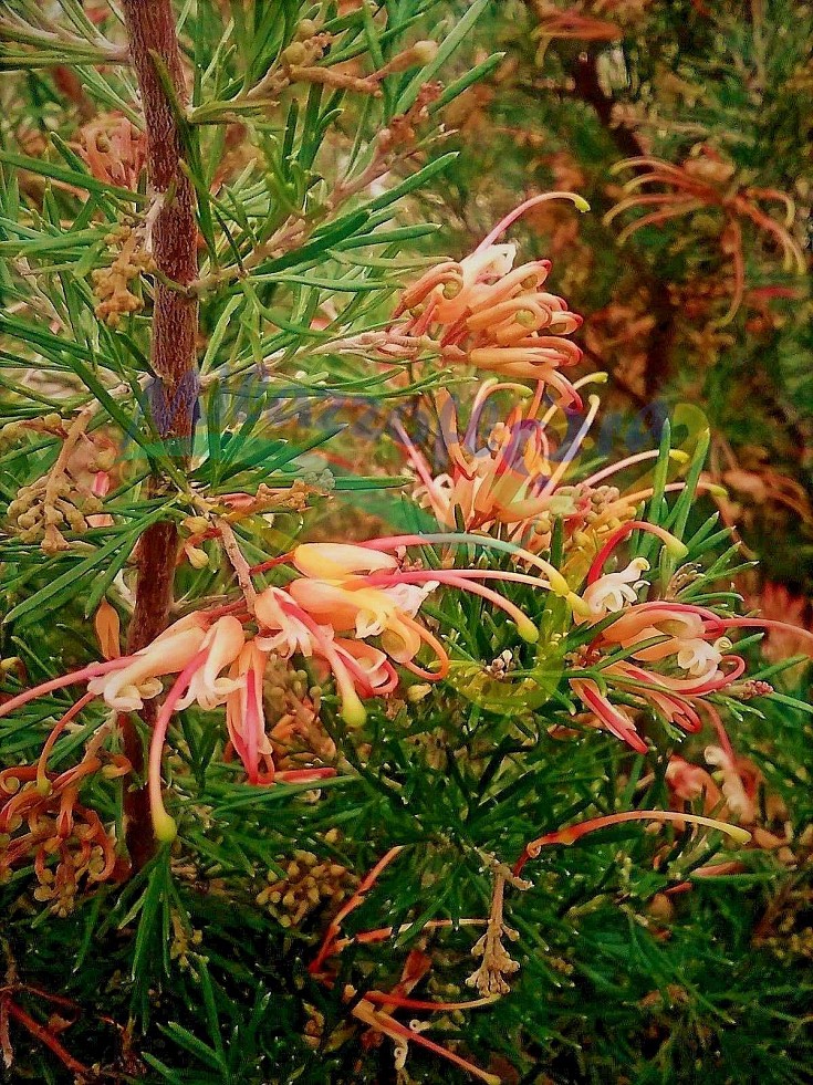 Grevillea x semperflorens es un híbrido cuyos padres se dice que son G. thelemanniana y una forma de flores amarillas de G. juniperina.