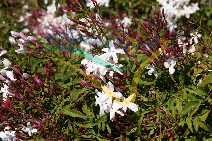 Es un trepador siempreverde semi herbáceo con ramas rojizas, largas hasta 10 m, enraizando en los nudos. Las hojas son opuestas, brillantes y de color verde oscuro superiormente, más claro inferiormente, imparipinnadas. Floración copiosa en invierno-primavera, o más tarde según el clima, tanto de casi esconder el follaje, con inflorescencias constituidas por racimos axilares o terminales.