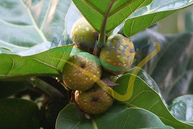 Ses grandes feuilles, vert foncé avec le revers plus clair, sont en forme de lyre ou de violon. Leur dimension diffère d'une variété à l'autre. Elles sont brillantes, coriaces et présentent une bordure ondulée, ainsi que des nervures saillantes. Cet arbre apprécie les emplacements très lumineux. Il est aussi souhaitable de dépoussiérer son feuillage et de l'humidifier en vaporisant de l'eau, surtout en période hivernale alors que l'air est plus sec.