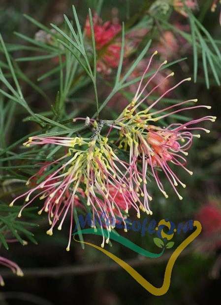 Grevillea x sempervirens est hybride. Cette plante porte le nom de C. F. Greville (1749-1809), un des fondateurs de la Royal Horticultural Society. Cet arbuste, au port dressé, atteint une hauteur de 1,50 m pour une largeur de 1 m. Feuillage persistant. Feuilles linéaires, non piquantes, vert tendre. Longue floraison de mars à juin. Fleurs jaune orangé, en grappes de 7 cm. Cette plante ne supporte pas une température au delà de -8°C. A réserver aux régions chaudes. Pour les autres régions, plantation en pot avec hivernage sous véranda. A planter dans un sol plutôt acide, bien drainé. Exposition au soleil, à l'abri d'un mur au sud. Protégez la souche en hiver. Arrosez par temps sec et fertilisez tous les quinze jours en été. Arbuste à moyen développement. Feuillage persistant, vert tendre. Longue floraison de mars à juin. Fleurs jaune orangé, en grappes de 7 cm.