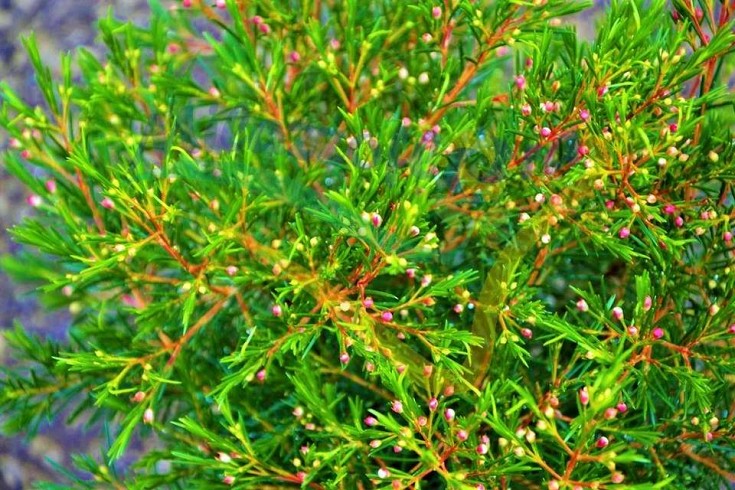 Chamelaucium uncinatum ist ein immergrüner Strauch. In ihrer Heimat wachsen sie in Büschen und erreichen eine Höhe von zwei bis vier Metern. Die sommerlichen Hitze- und Dürreperioden Australiens werden mit dem im Gewebe gespeicherten Wasser überstanden.