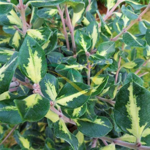 Der Metrosideros kermadecensis 'variegata' ist ein wunderschöner exotischer Baum mit mildem Klima, der in Neuseeland beheimatet ist und immergrüne Blätter hat, die bunt, grün, creme und gelb sind. Sie ist kompakter als Metrosideros excelsa und lässt sich leicht in einem frostfreien Topf unter einer Veranda anbauen. Diese Ziersorte mit einer spektakulären sommerblühenden roten Blüte, deren feine, helle Blütenblätter denen von Callistemon ähneln, wird die bunte Maori von Pohutukawa genannt. Der bunte Metrosideros braucht einen frischen und gut angereicherten Boden, um gedeihen zu können. Er ist an der Küste in Südfrankreich gepflanzt und trotzt den mit Sprühnebel beladenen Winden problemlos.